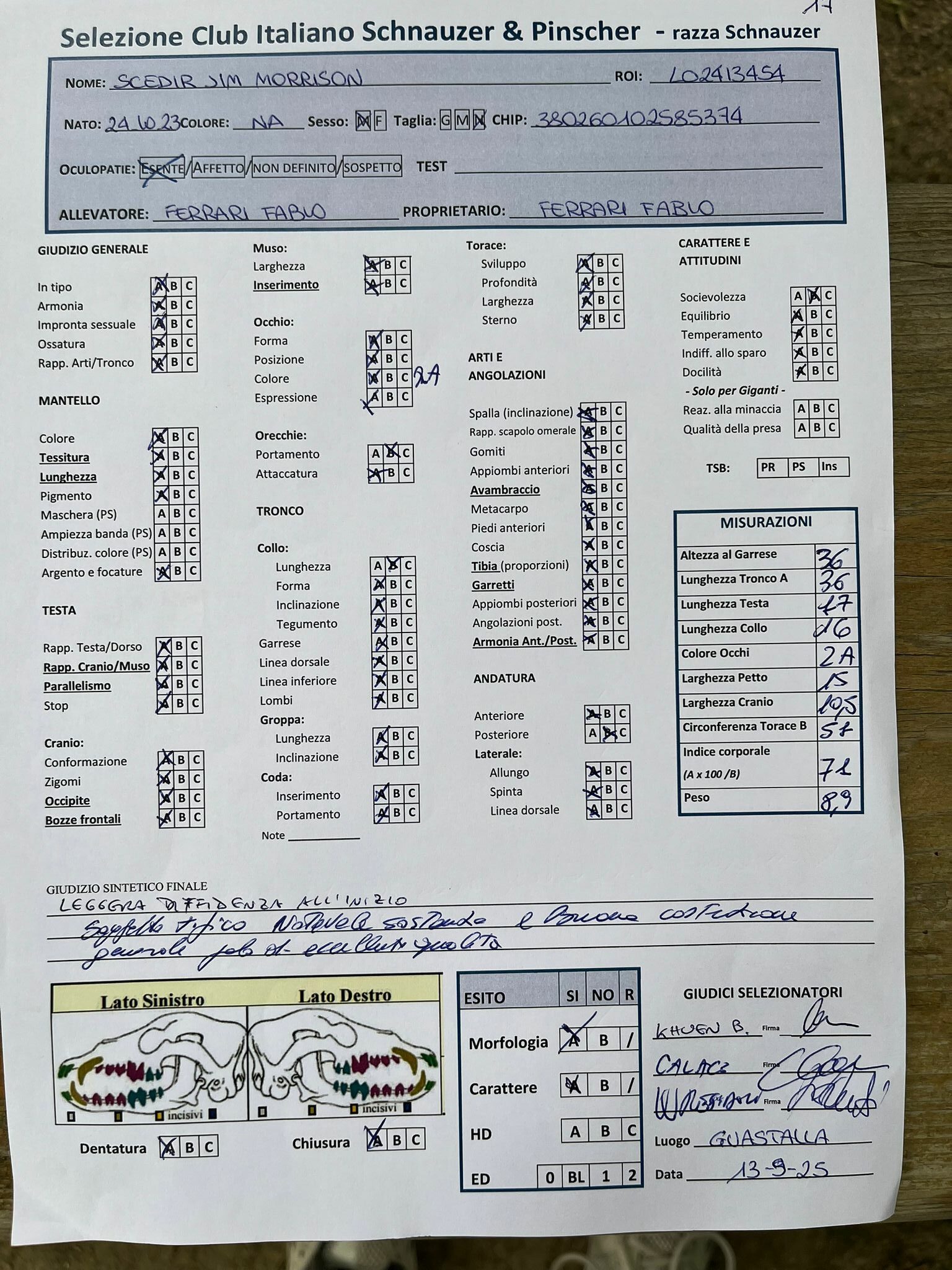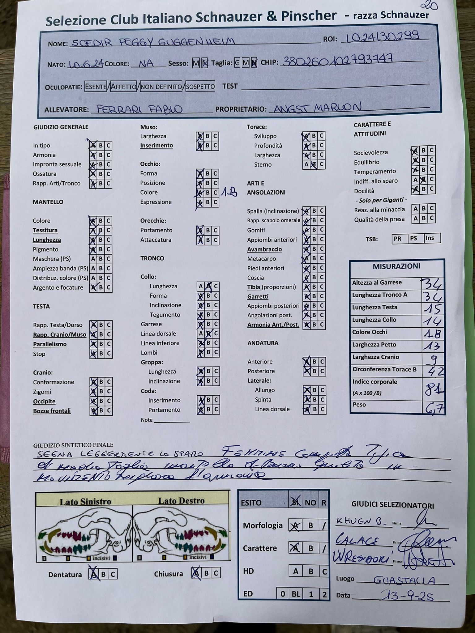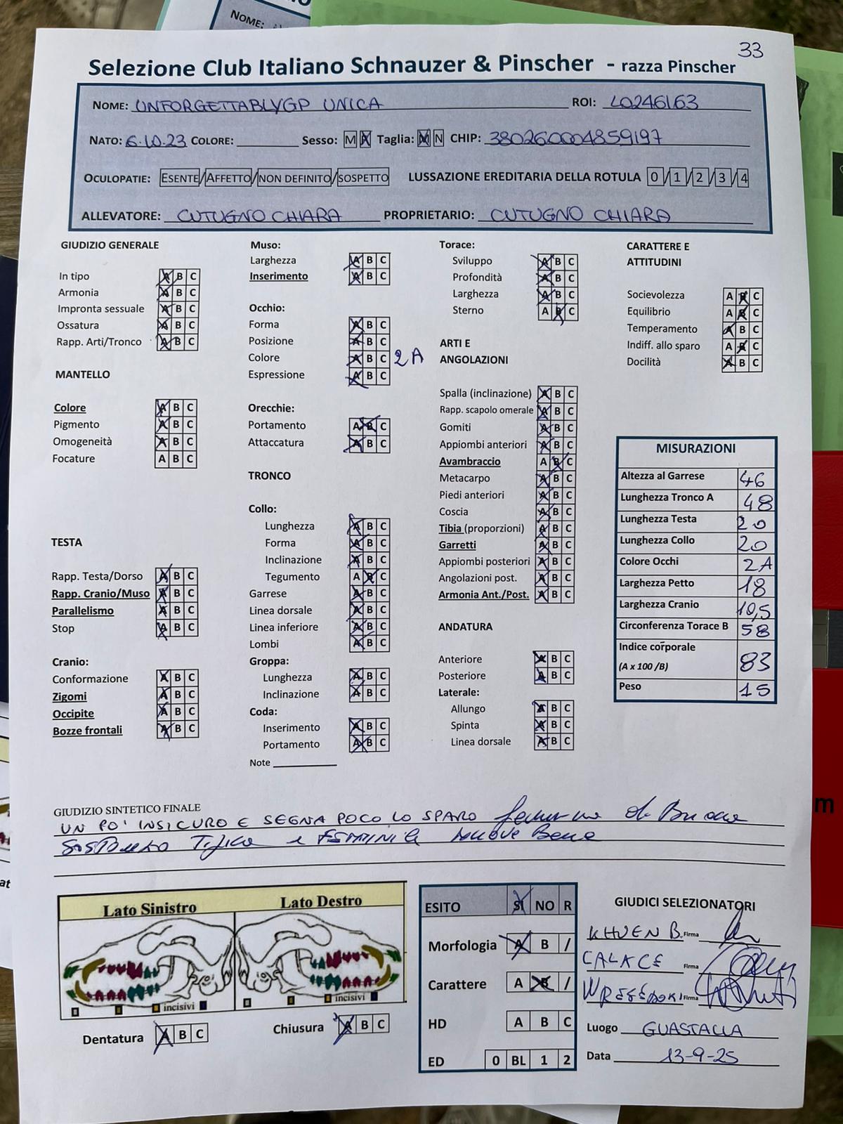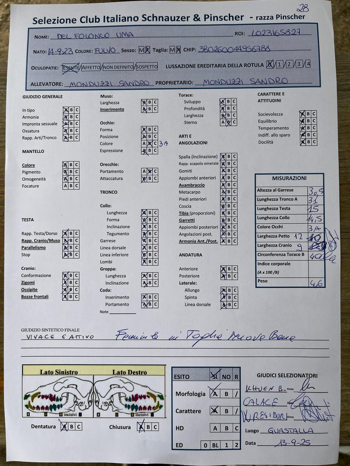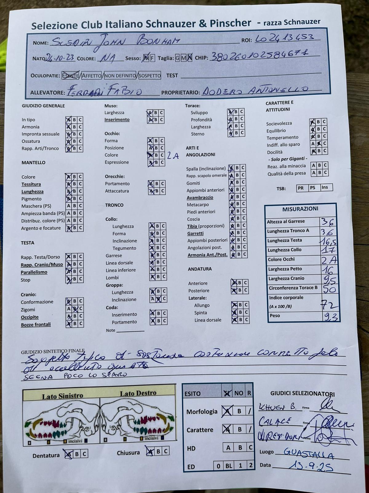 GIUDICI MORFOLOGIA: Fabrizio Accoti – Carlo Calace – Giovanni Pentenero – Walter Residori