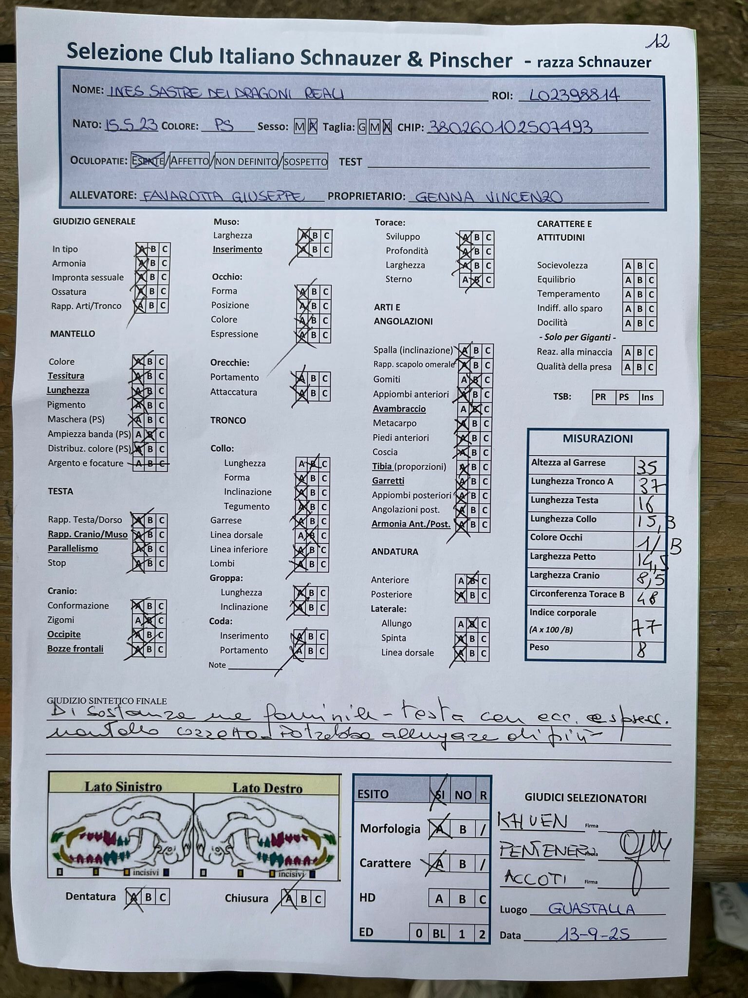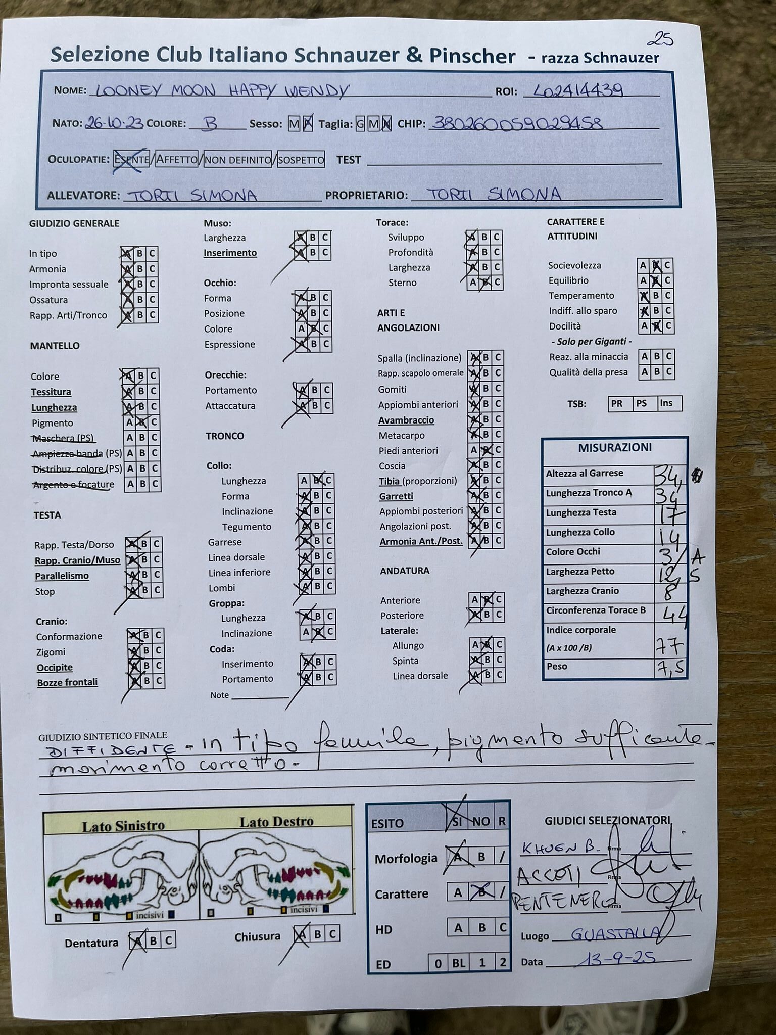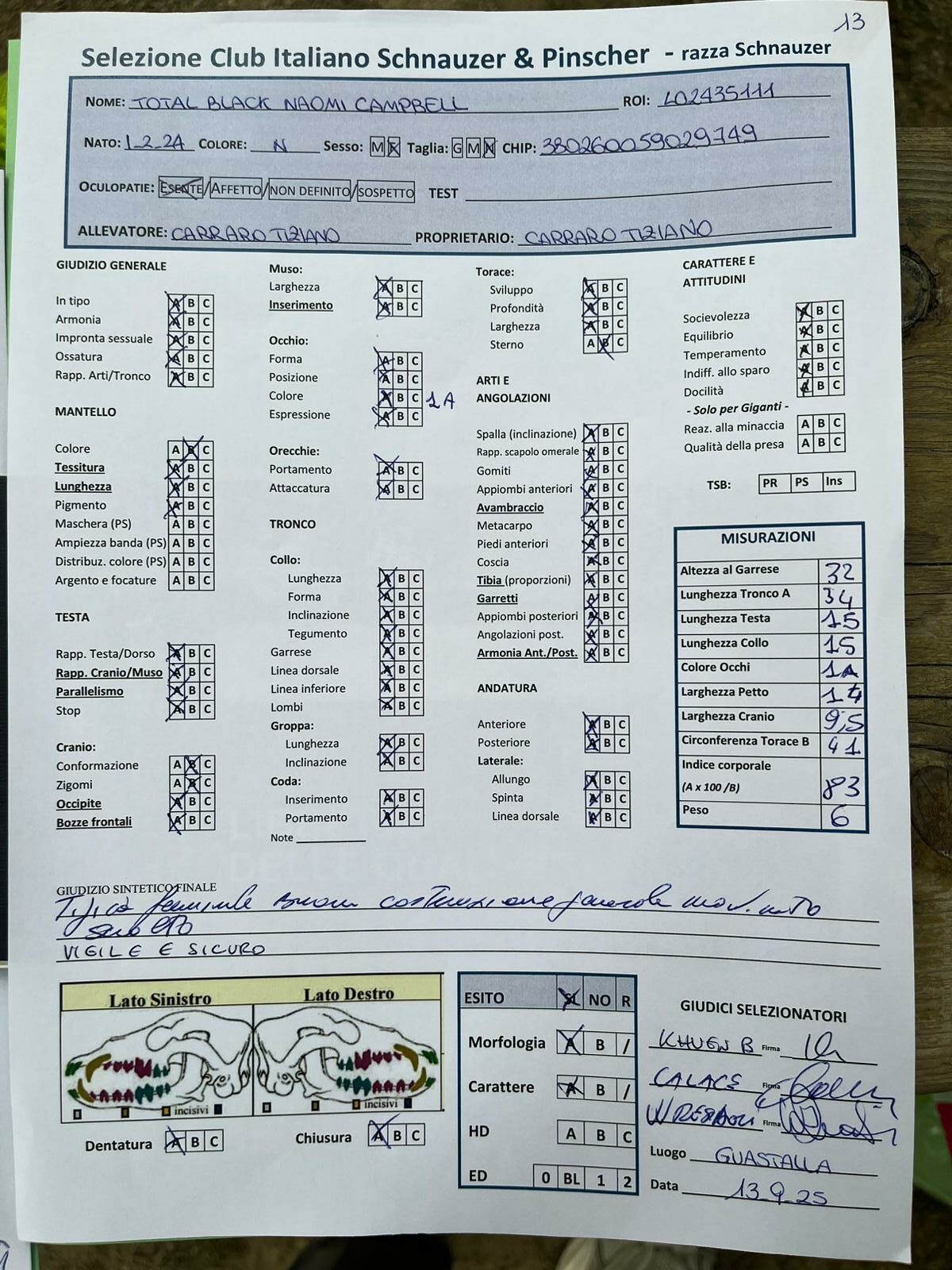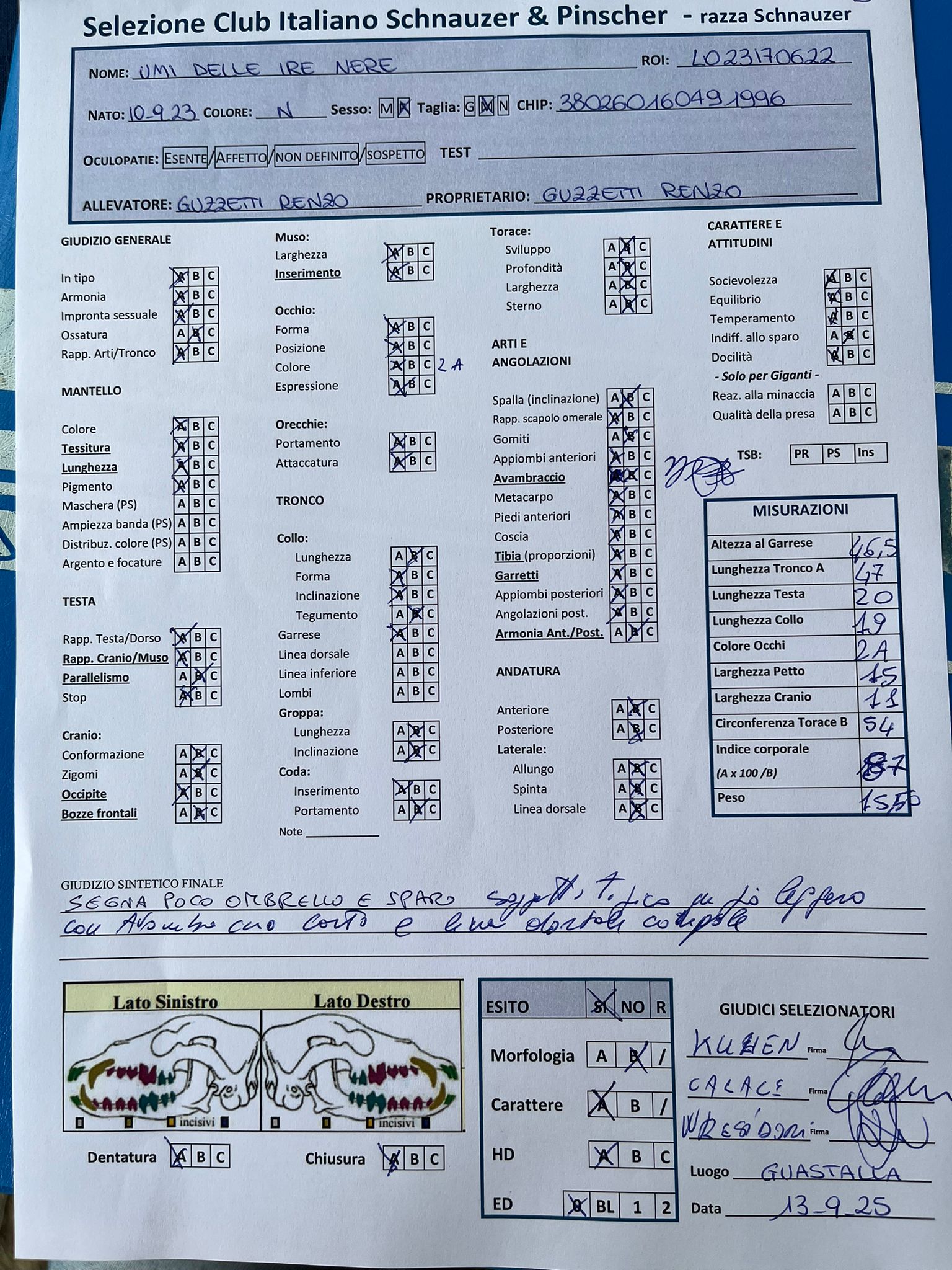 GIUDICI MORFOLOGIA: Fabrizio Accoti – Carlo Calace – Giovanni Pentenero – Walter Residori