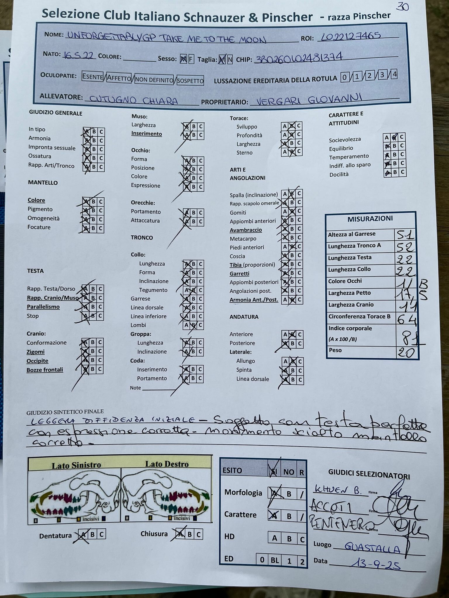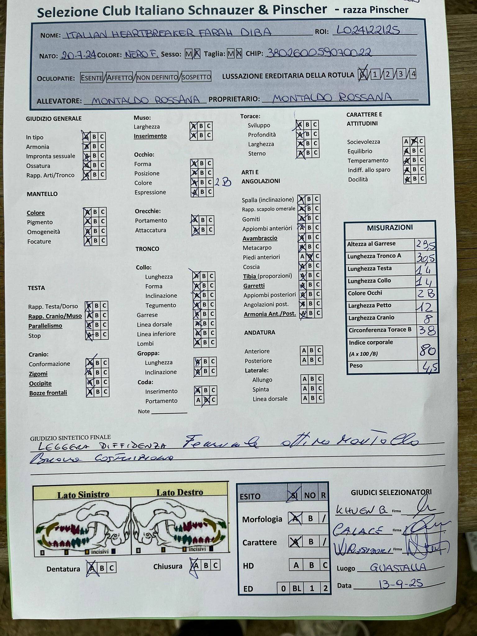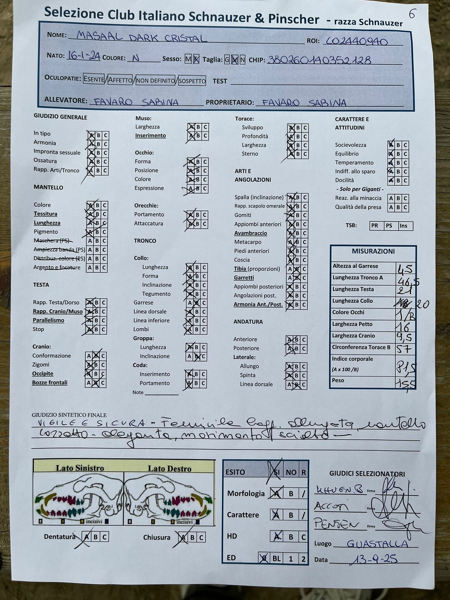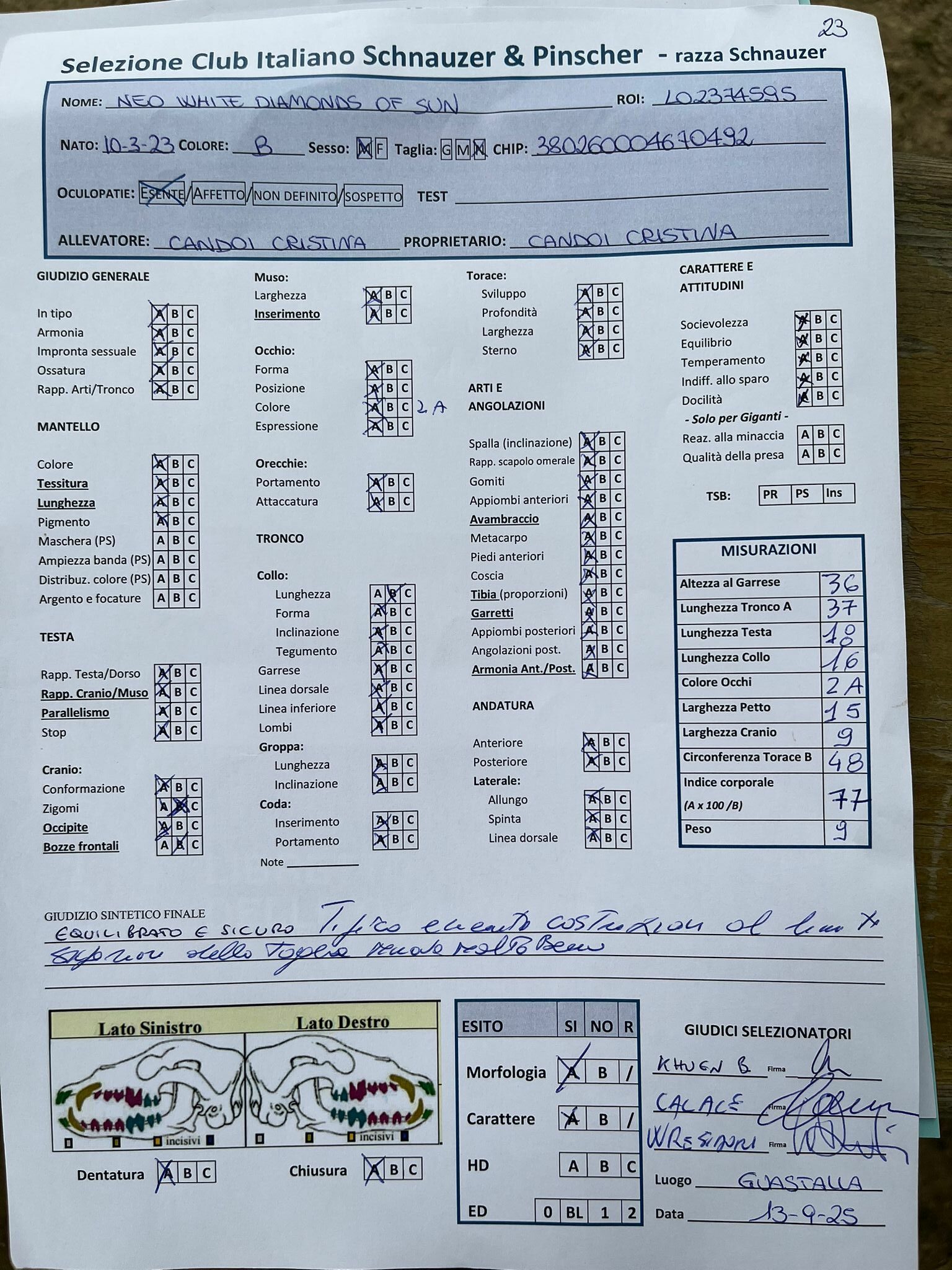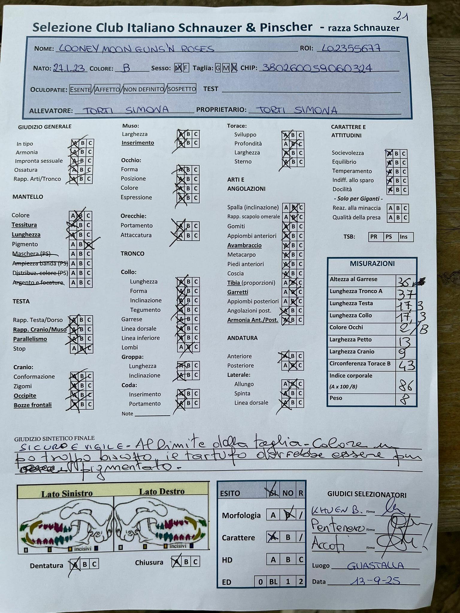 GIUDICI MORFOLOGIA: Fabrizio Accoti – Carlo Calace – Giovanni Pentenero – Walter Residori