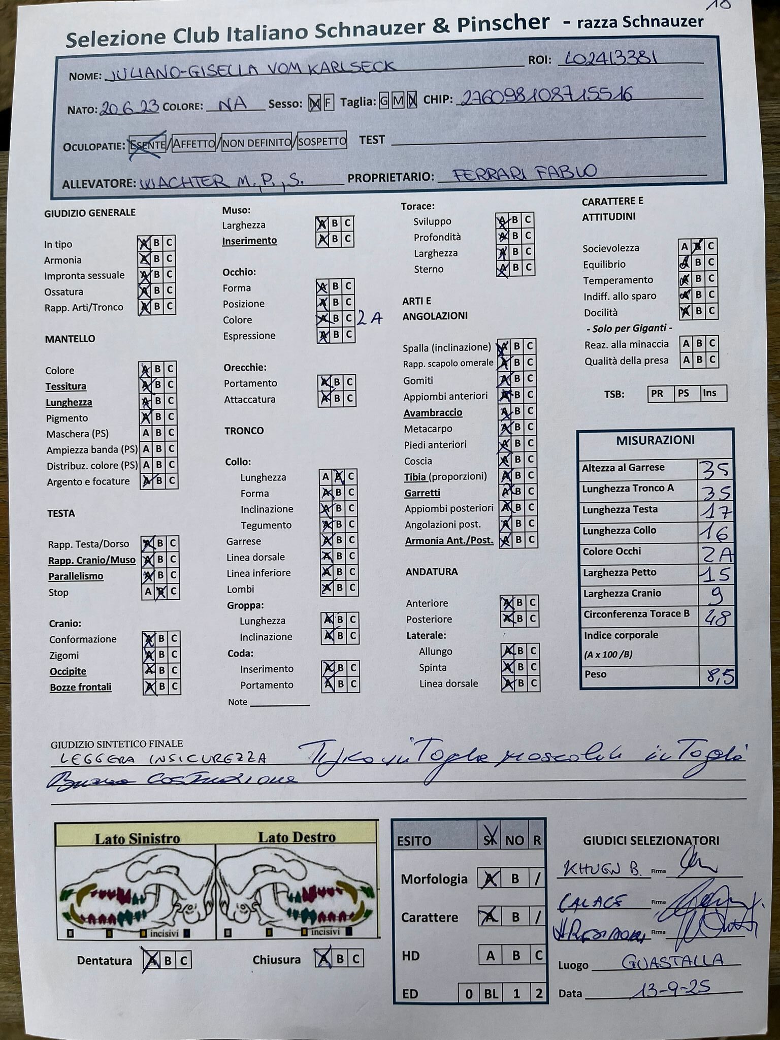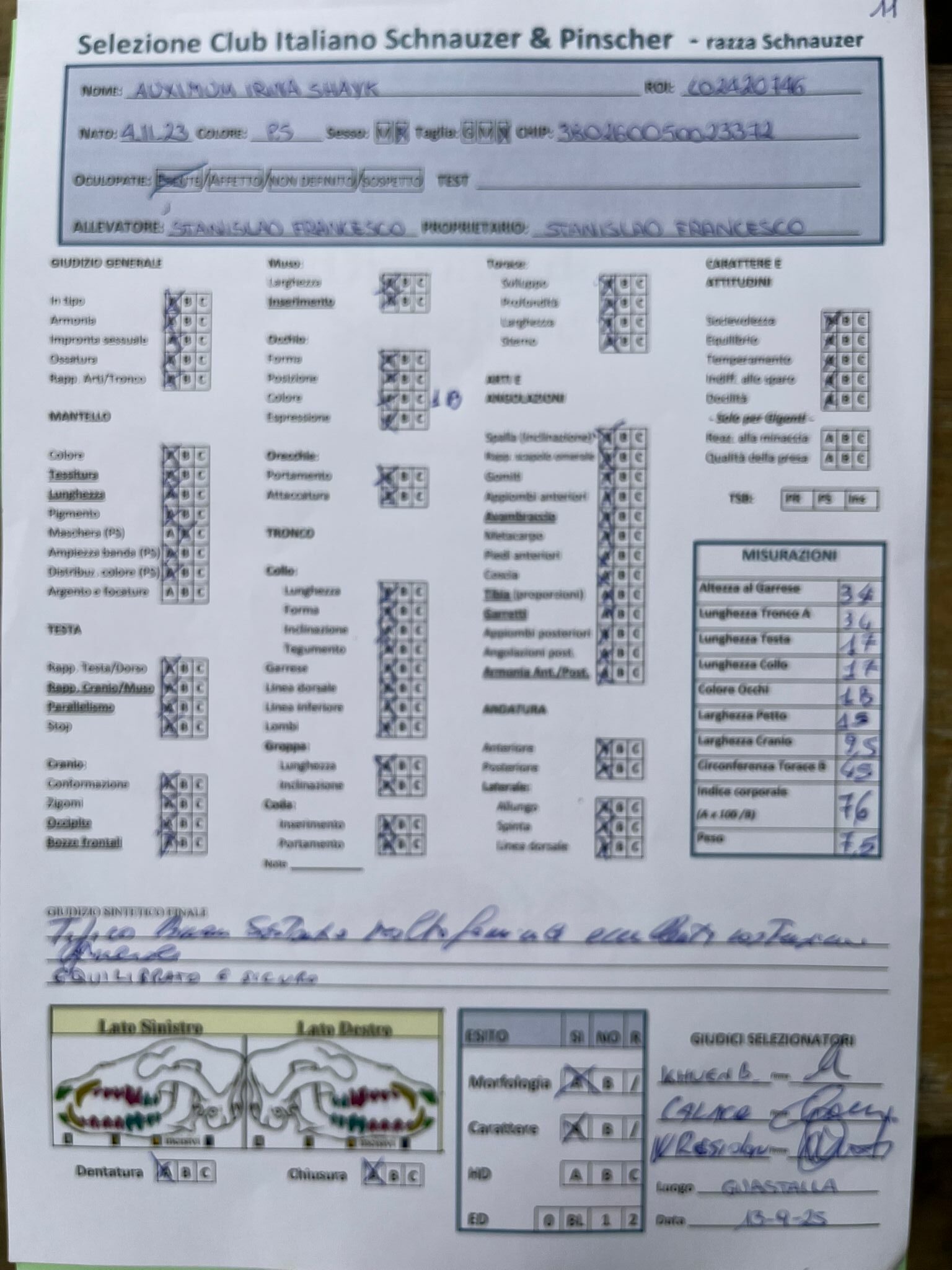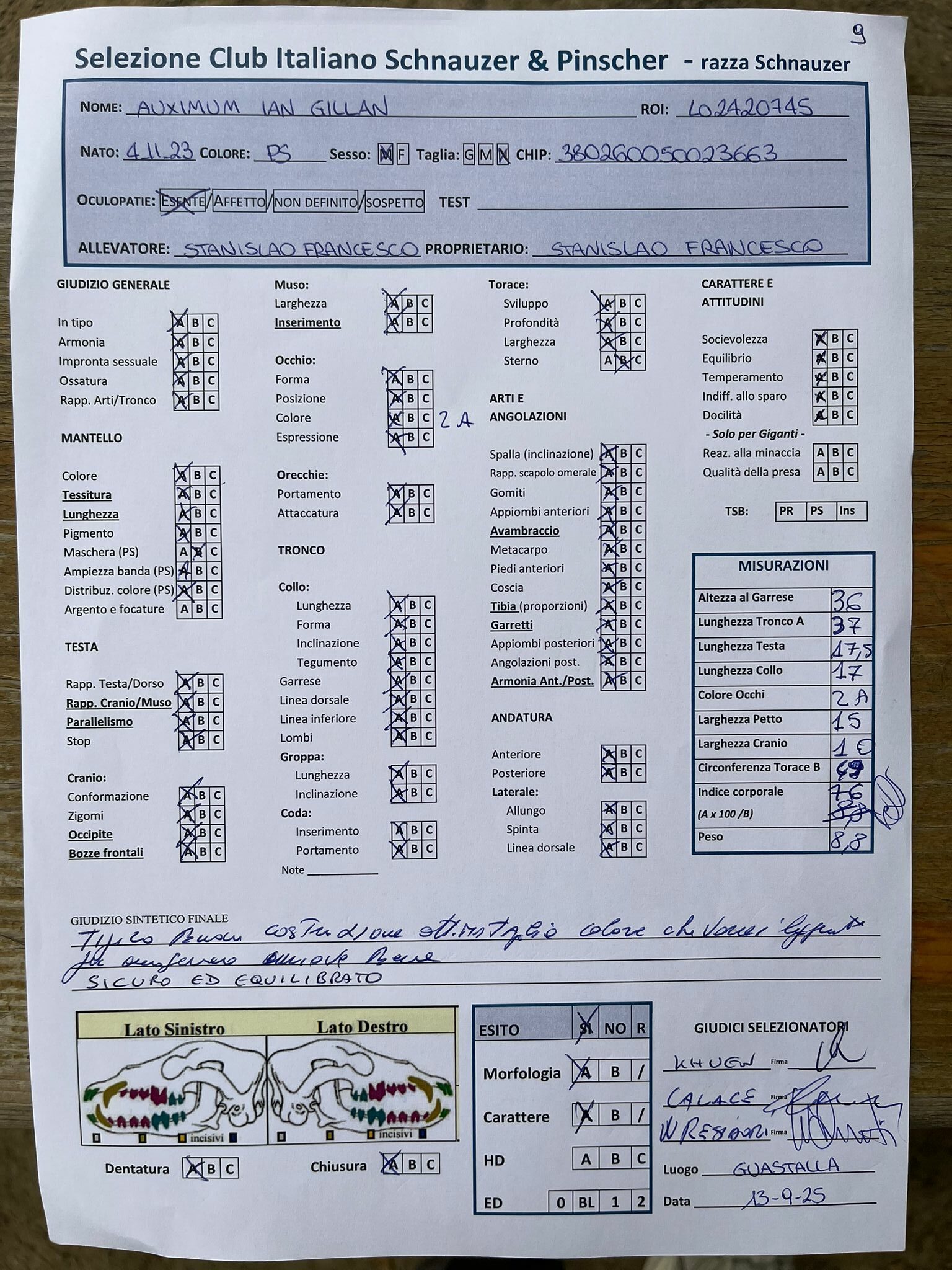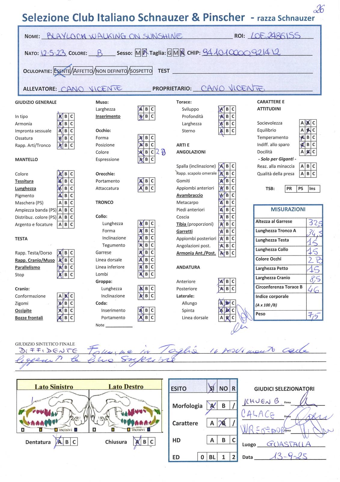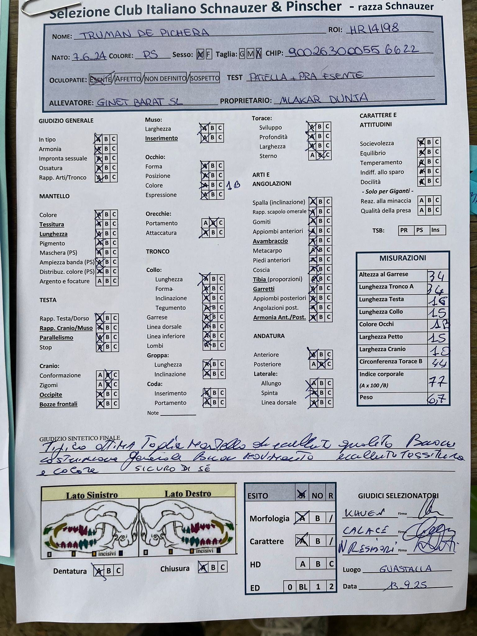 GIUDICI MORFOLOGIA: Fabrizio Accoti – Carlo Calace – Giovanni Pentenero – Walter Residori