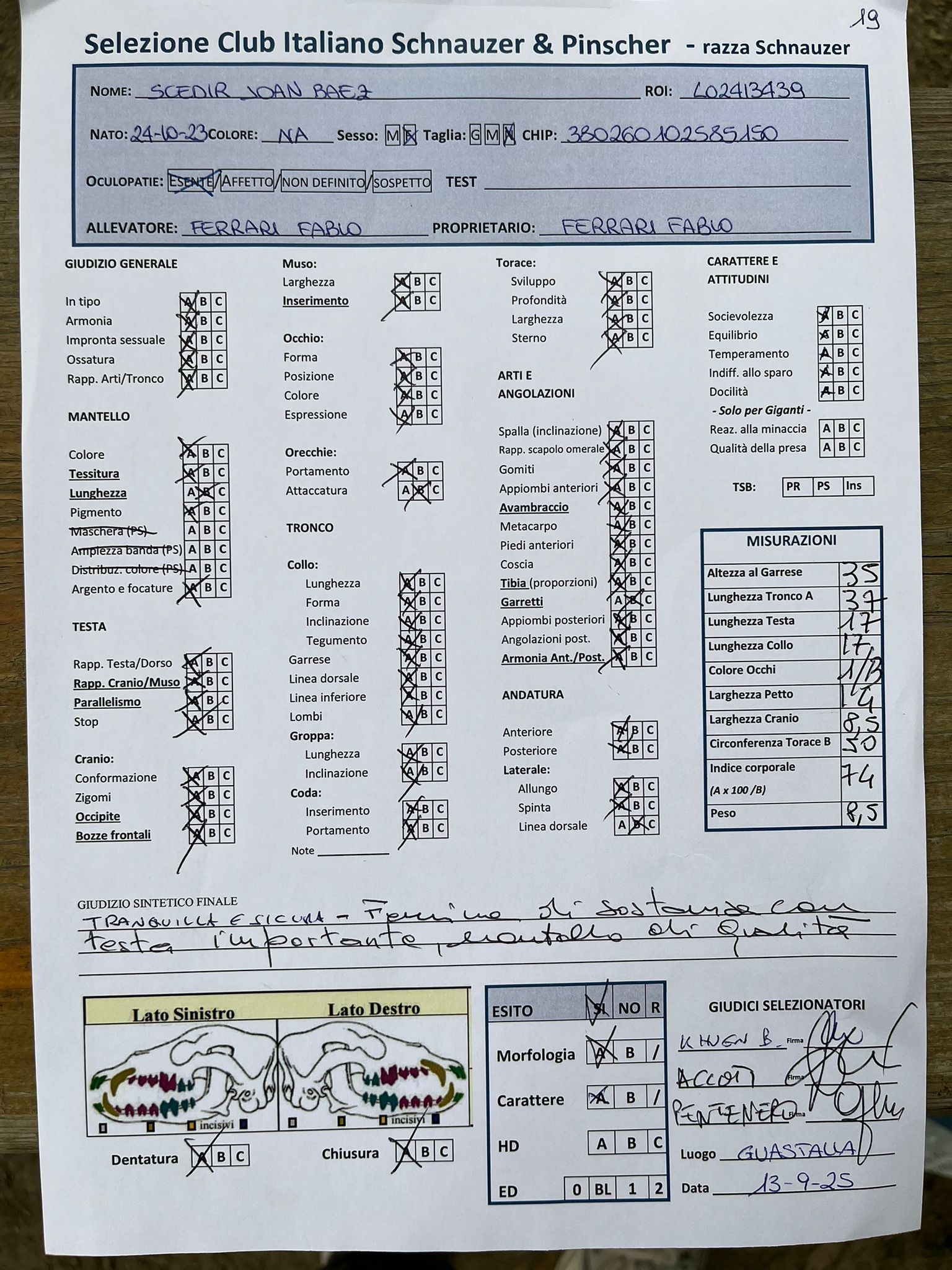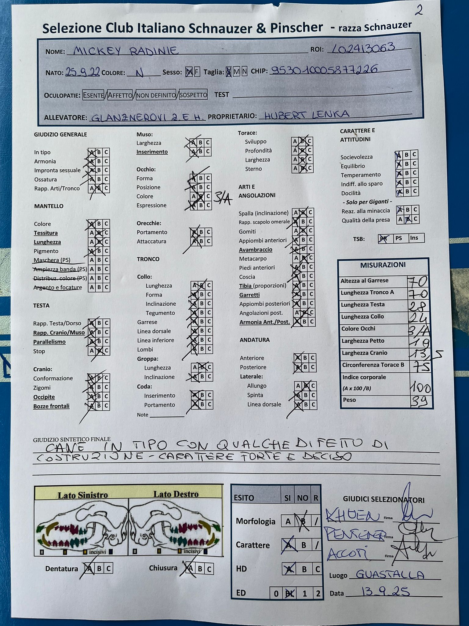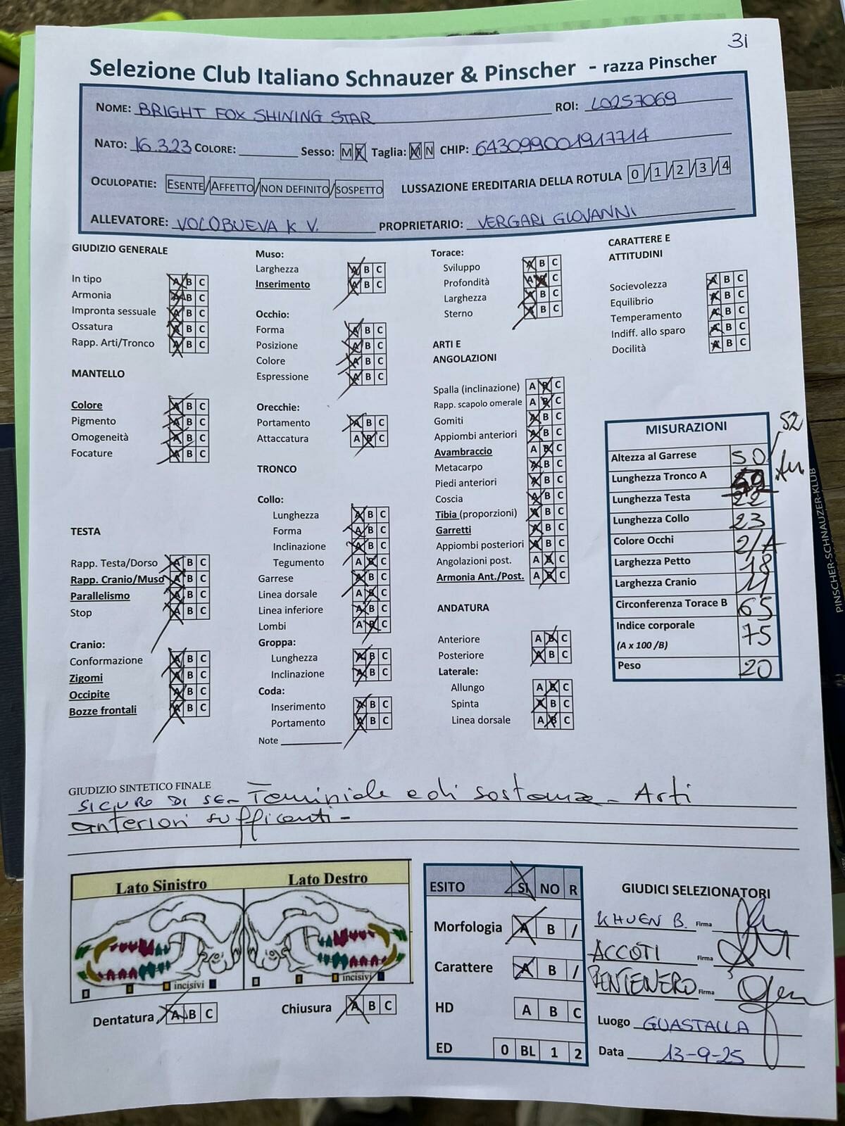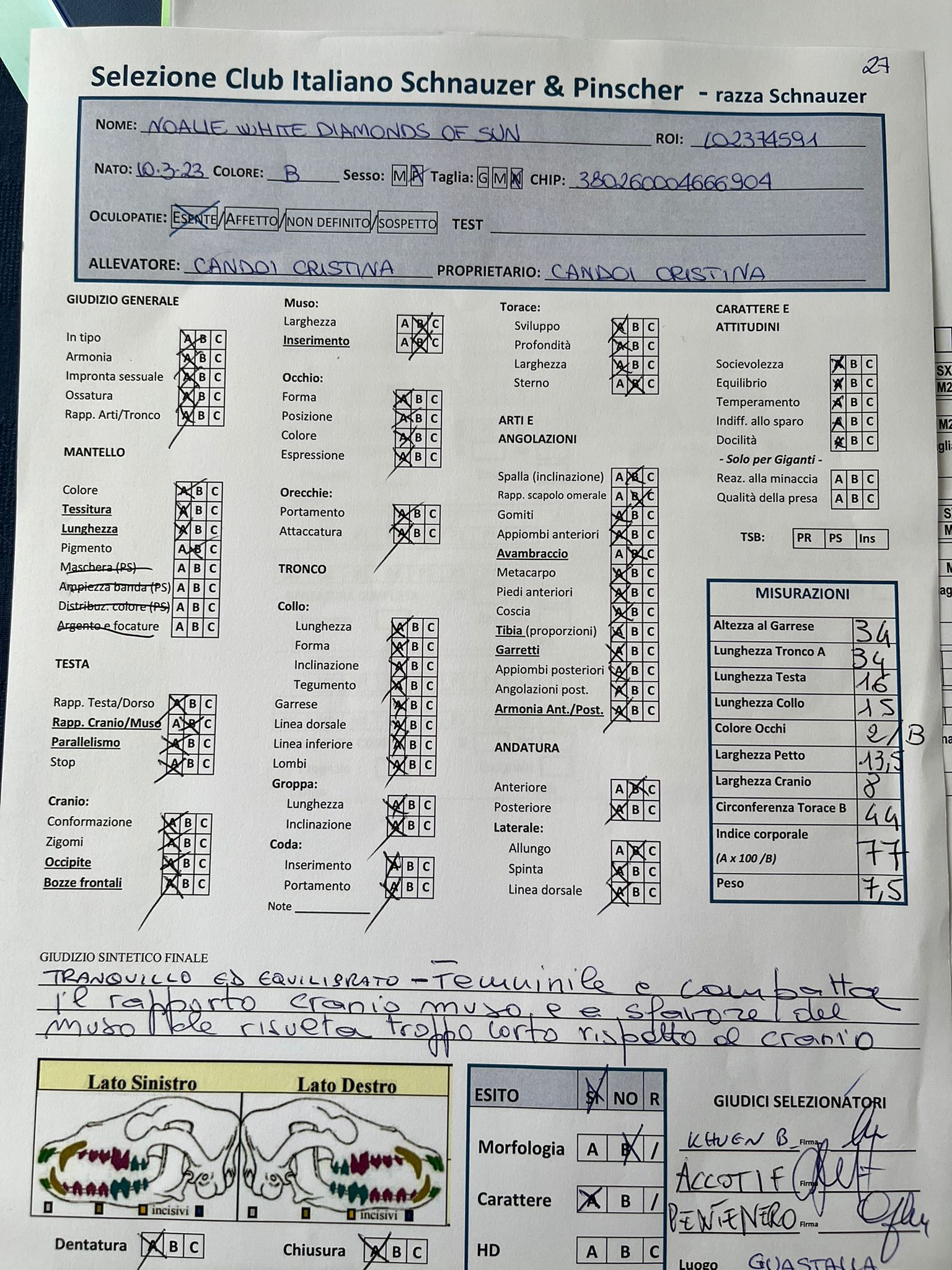 GIUDICI MORFOLOGIA: Fabrizio Accoti – Carlo Calace – Giovanni Pentenero – Walter Residori