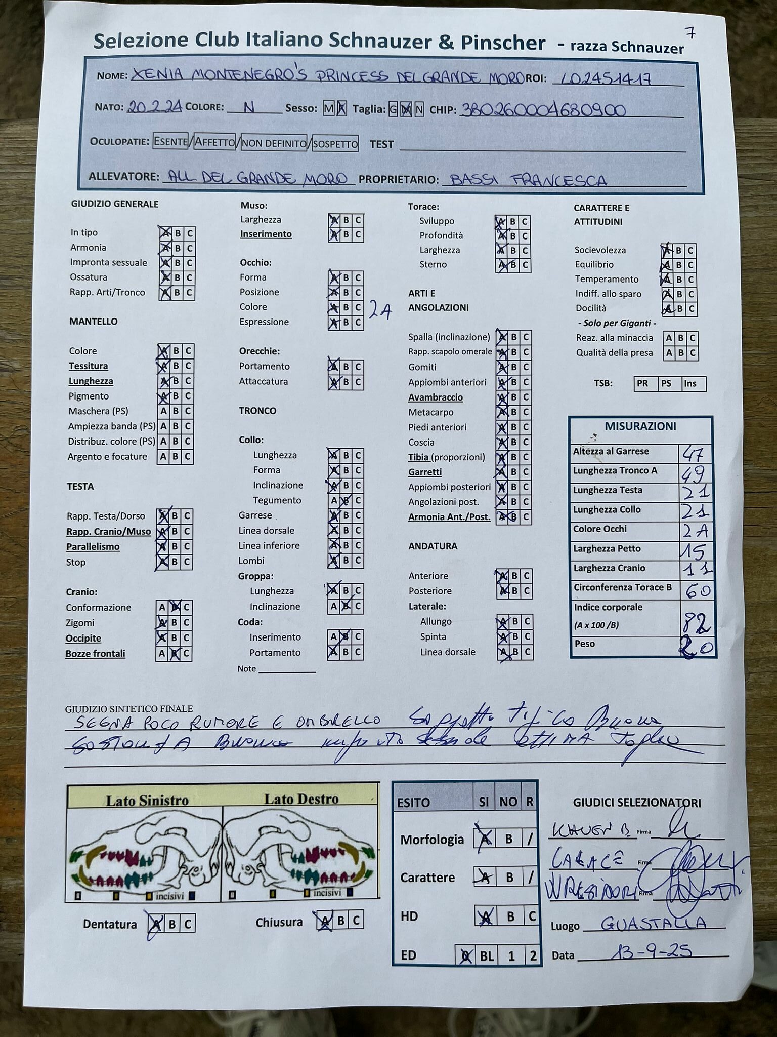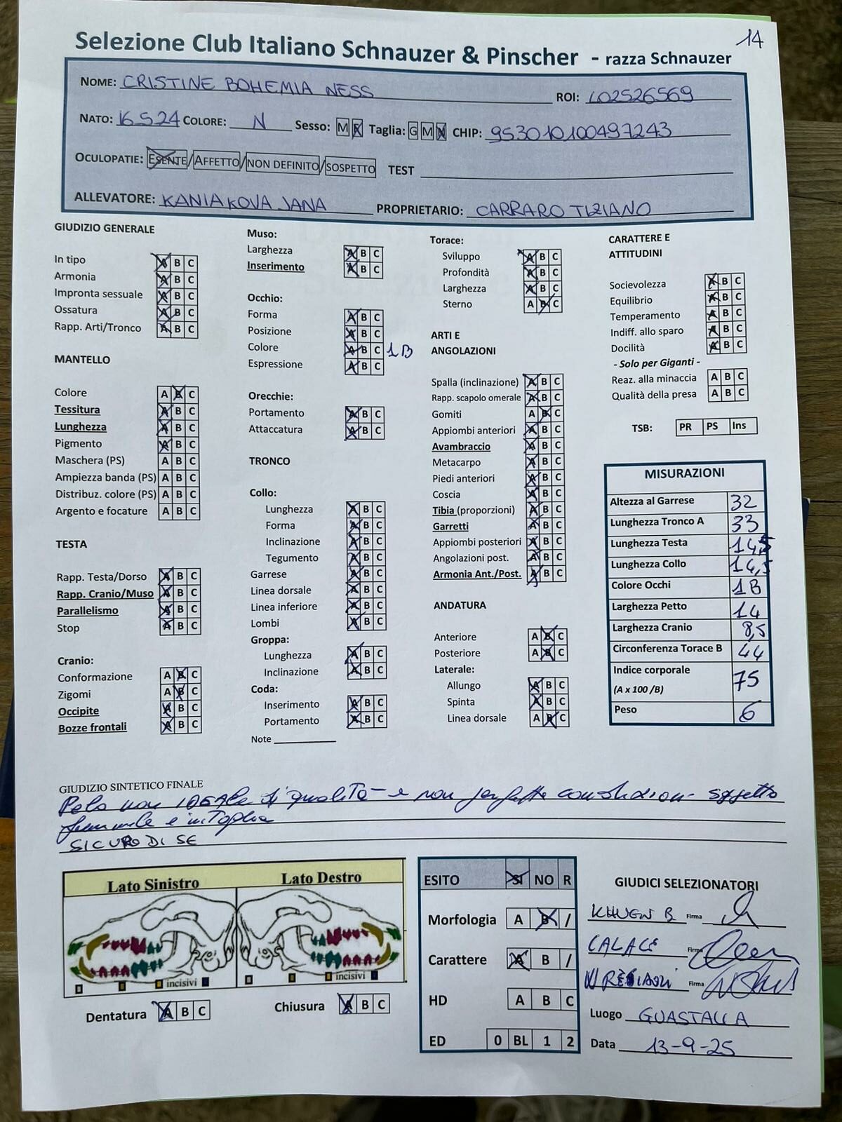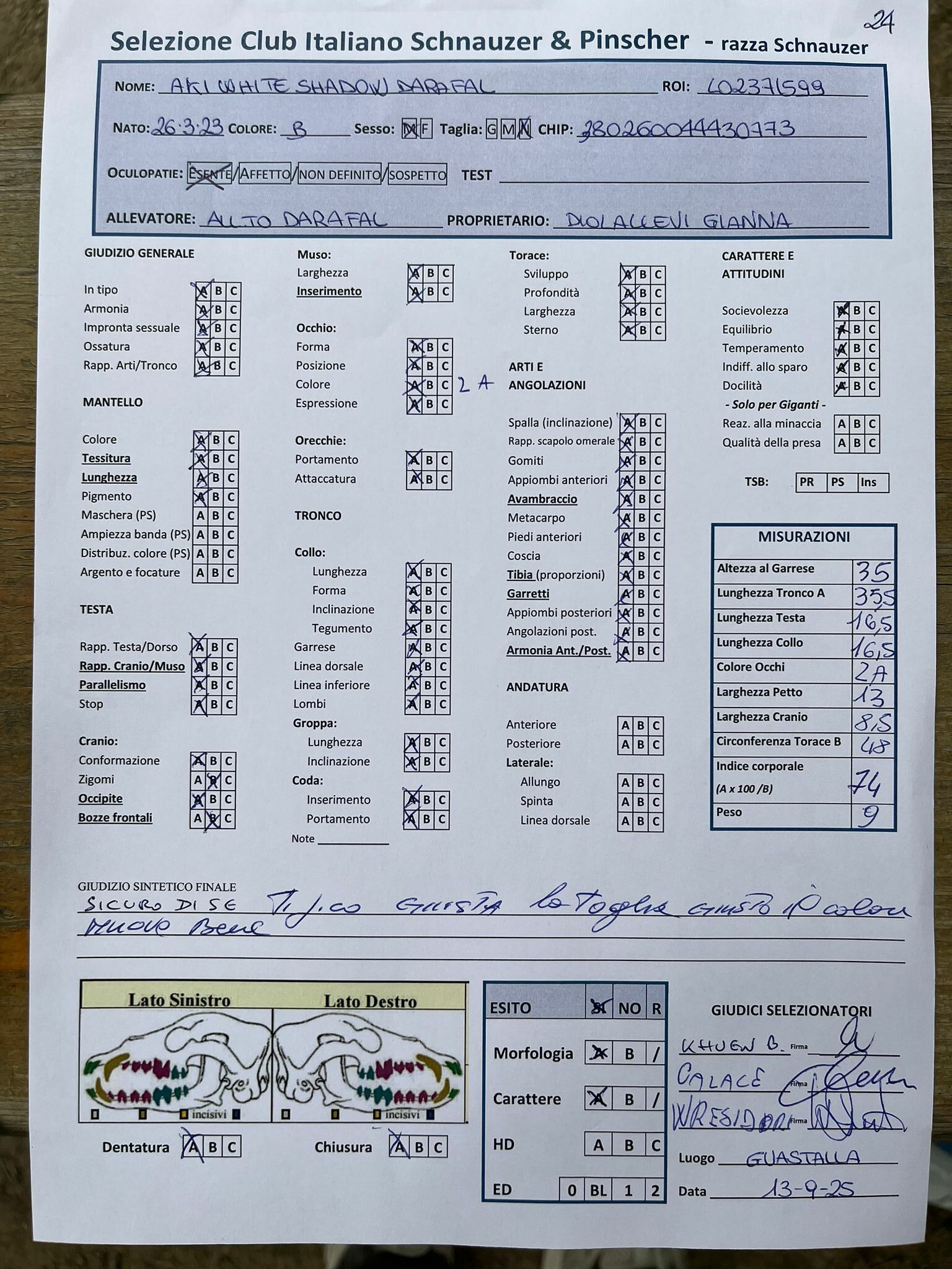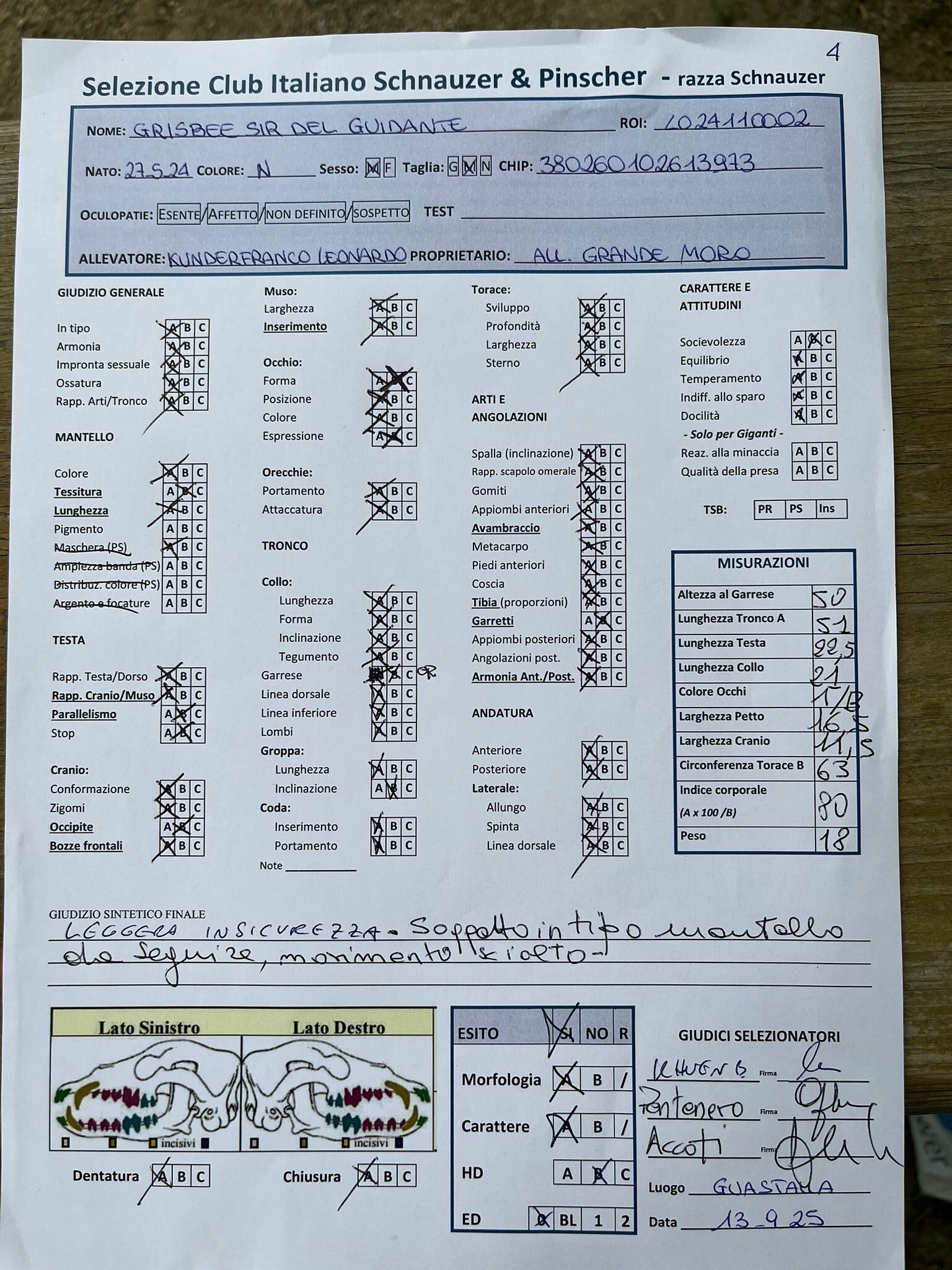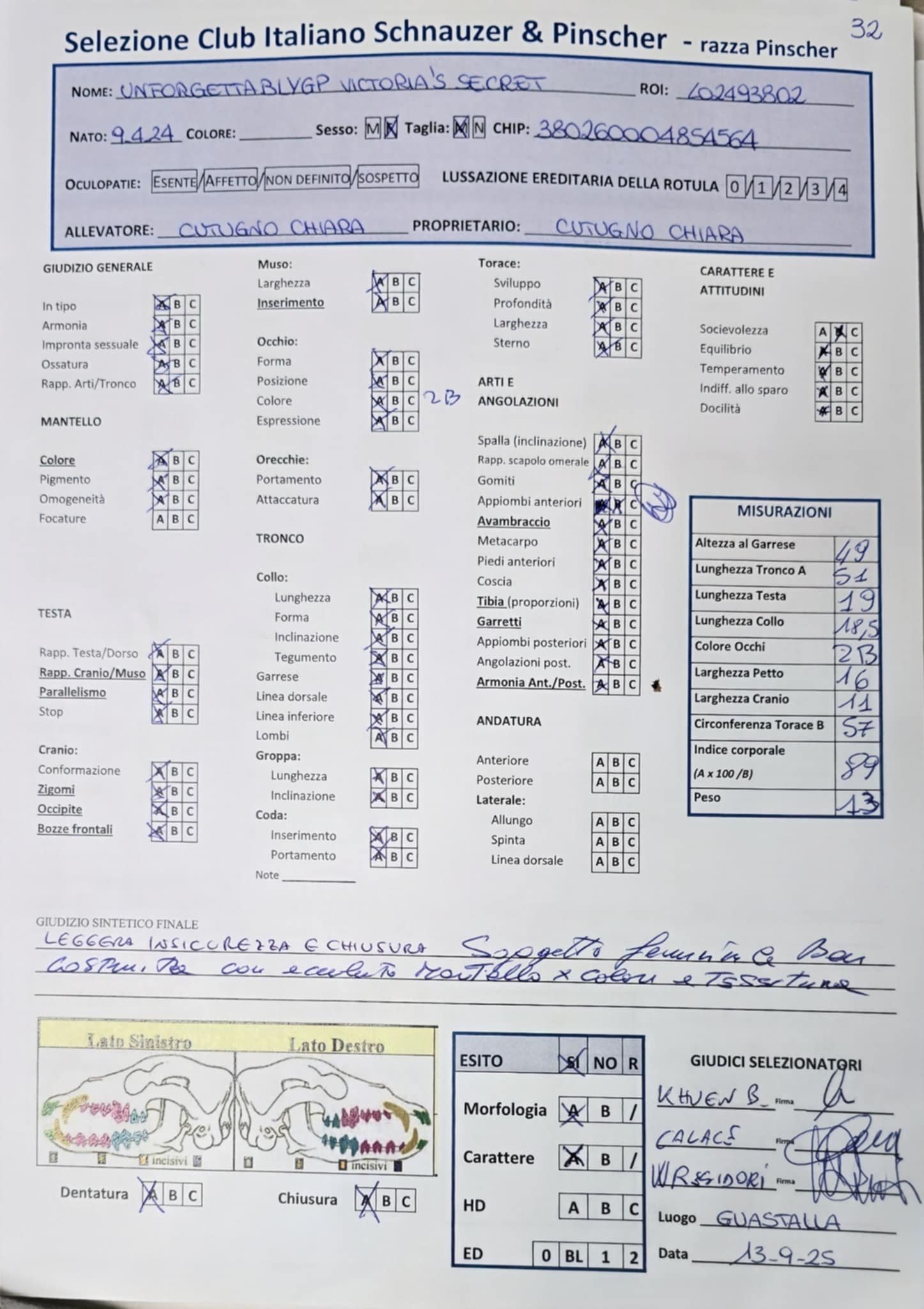 GIUDICI MORFOLOGIA: Fabrizio Accoti – Carlo Calace – Giovanni Pentenero – Walter Residori